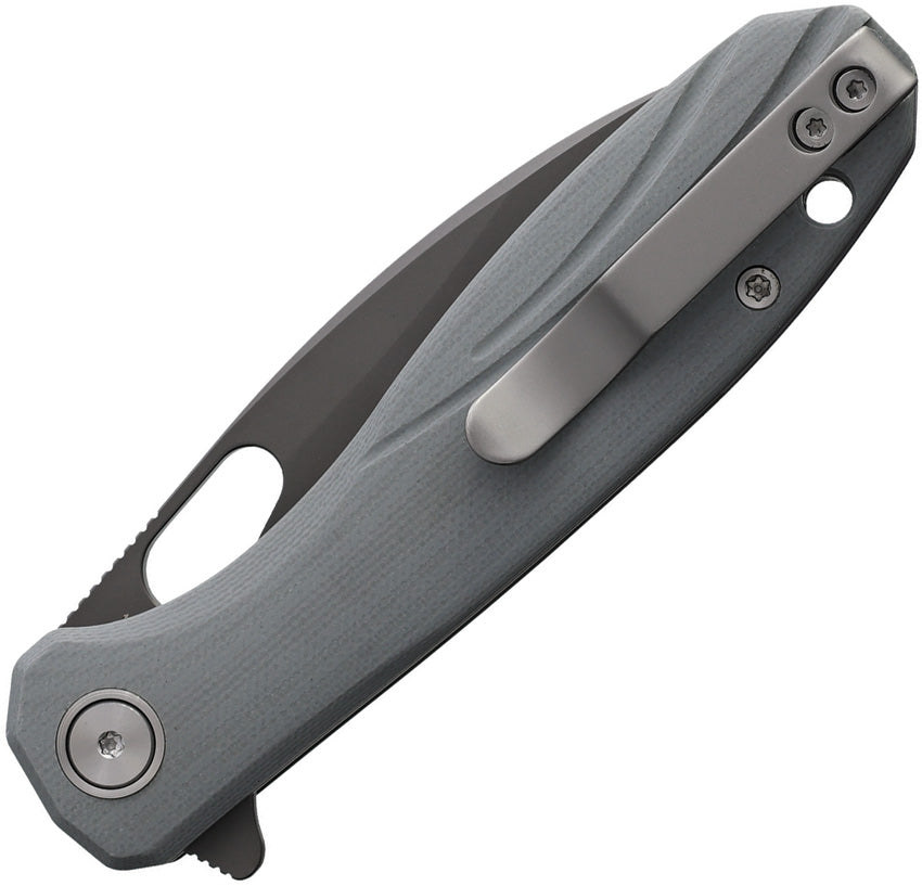 4.13" (10.49cm) closed. 3.13" (7.95cm) gray PVD coated 14C28N Sandvik stainless spear point blade. Gray G10 handle. Extended tang. Thumb pull. Lanyard hole. Pocket clip. Boxed.