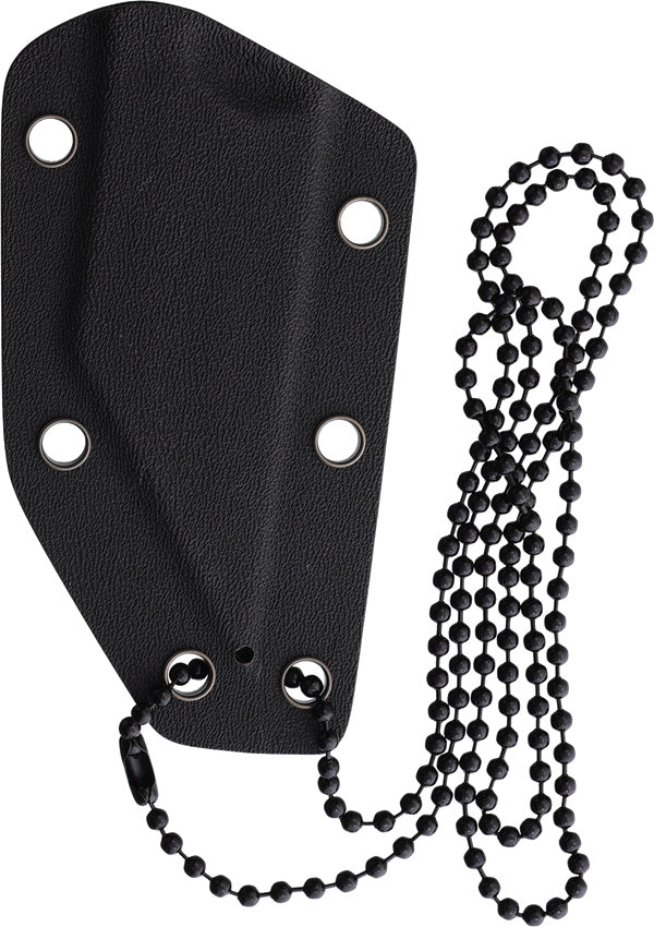 6.25" (15.88cm) overall. 3.25" (8.26cm) black stonewash finish stainless blade. One-piece construction. Limited edition. This model is thinner than the original. Black Kydex neck sheath. Boxed.