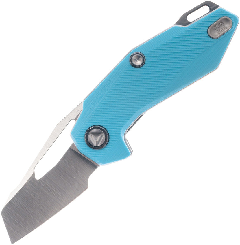 2.62'' closed. 1.8'' Satin finish 14C28N steel blade. Mint green G10 handle. Linerlock. Thumb slot. Flipper tab. Front flipper. Lanyard Hole. Ceramic ball bearing. Tip-Up pocket clip. Designed by David Jin. Boxed.