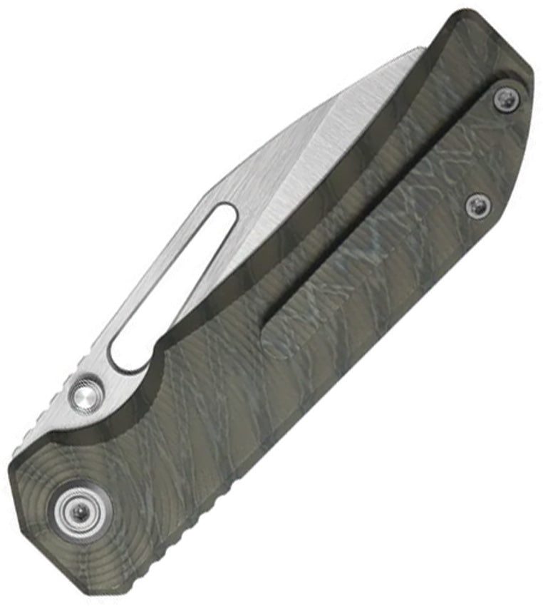3.94'' closed. 3.46'' Belt satin finish CPM-S90V steel sheepsfoot blade. Hollow Grind. Flamed titanium handle. Top Linerlock (Button Lock). Thumb slot. Dual sided thumb studs. Tip-Up right carry pocket clip. Designed by James Lowe. Boxed.