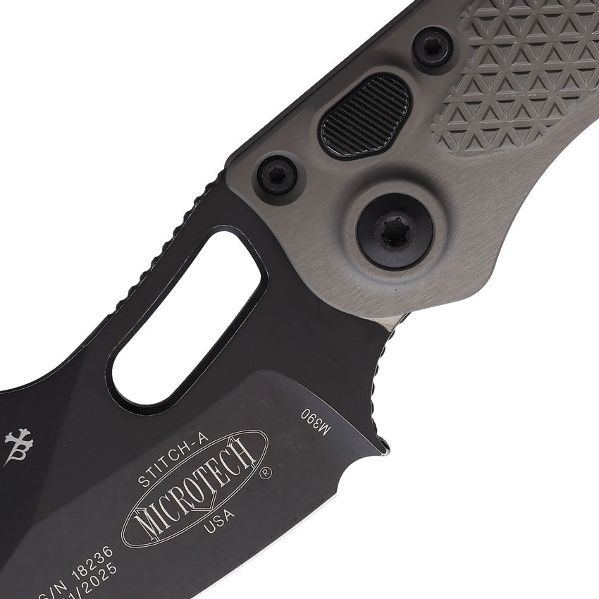 Microtech Automatic Stitch Knife Button Lock Natural Clear Gray Aluminum Black Apocalyptic Blade 1691APNC