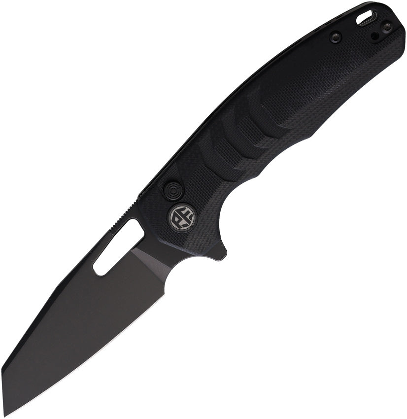 4" (10.16cm) closed. 3" (7.62cm) black stonewash finish 14C28N Sandvik stainless reverse tanto blade. Black G10 handle. Extended tang. Thumb pull. Lanyard hole. Pocket clip. Boxed.