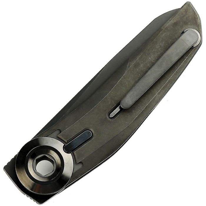 4.5" (11.43cm) closed. 3.5" (8.89cm) black DLC coated Bohler M390 stainless blade. Black stonewash finish titanium handle. Non-Locking Detent Lock. Pocket clip. Extended tang. Boxed.