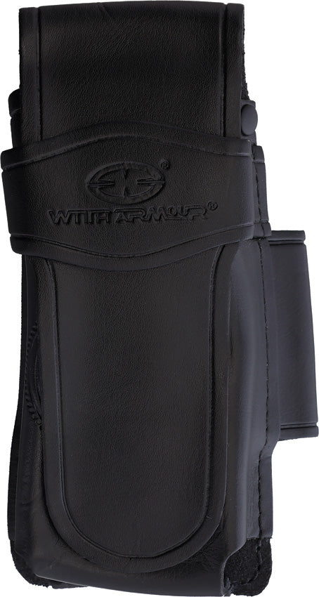 5.5" (13.97cm) closed. 4.75" (12.07cm) two-tone titanium coated VG-10 stainless blade. Black micarta handle. Lanyard hole. Red G10 liners. Pin-Lock. Black leather belt sheath. Boxed.