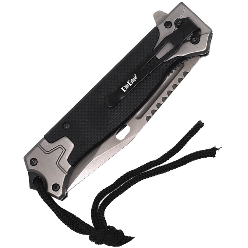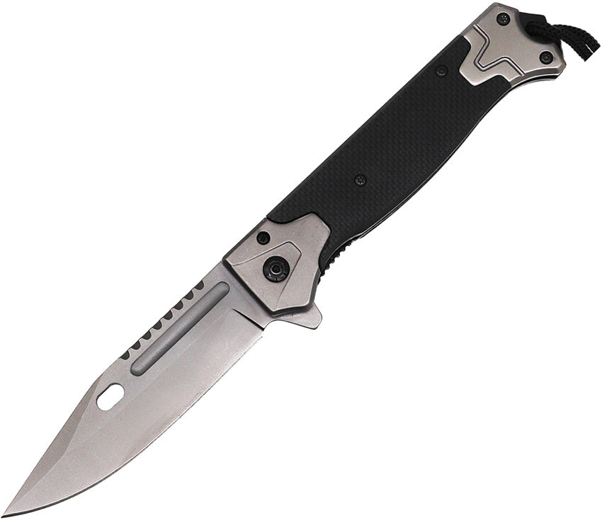 Assisted opening. 5.13" (13.03cm) closed. 4" (10.16cm) gray titanium coated stainless blade. Black G10 handle. Stainless bolster(s). Extended tang. Lanyard hole. Pocket clip. Boxed.