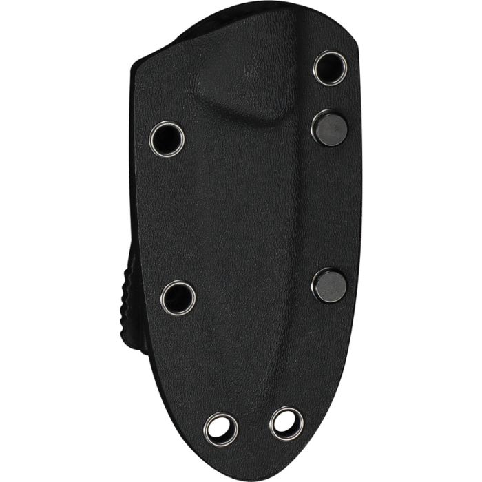 7.12'' overall. 2.99'' Black stonewashed finish 14C28N steel drop point blade. Flat Grind. Guibourtia wood handle. Full tang. Lanyard hole. Black tied paracord lanyard. Black kydex belt sheath. Boxed.