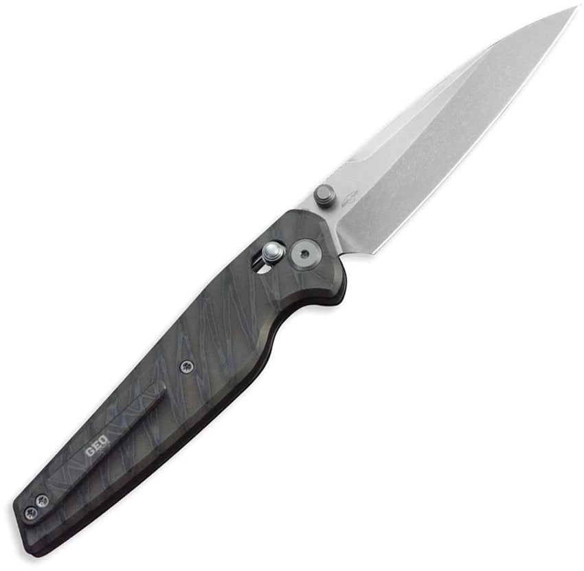 GEO Knife Fantasm Axis Lock Tiger Striped Titanium Folding Bohler M390 Pocket Knife 2505B