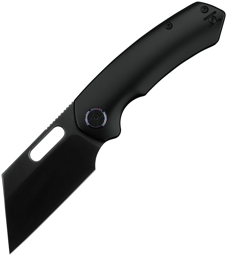 4.25" (10.8cm) closed. 3.25" (8.26cm) black DLC coated Vancron steel cleaver style blade. Black DLC coated titanium handle. Thumb pull. Lanyard hole. Pocket clip. Extended tang. Boxed.