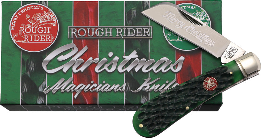 Rough Rider Merry Christmas 2025 Half Hawk Green & Red Bone Folding Pocket Knife 2725