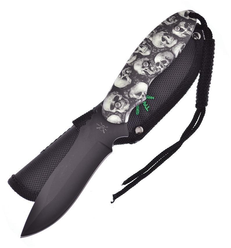 Frost 9" TacXtreme Fixed Blade White Skull Camo Pakkawood Black Knife TX023WSC