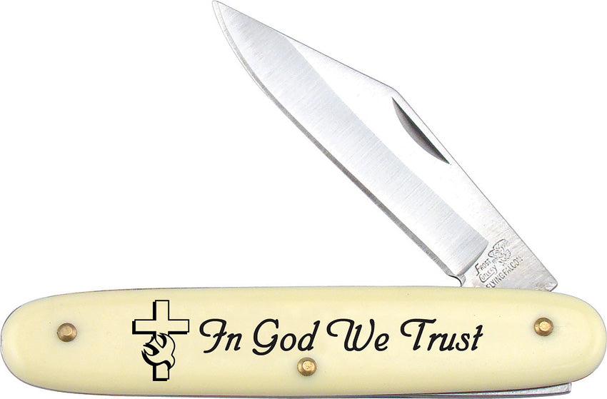 Frost In God We Trust Yellow Handle Novelty Stainless Clip Pt Folding Knife NB6