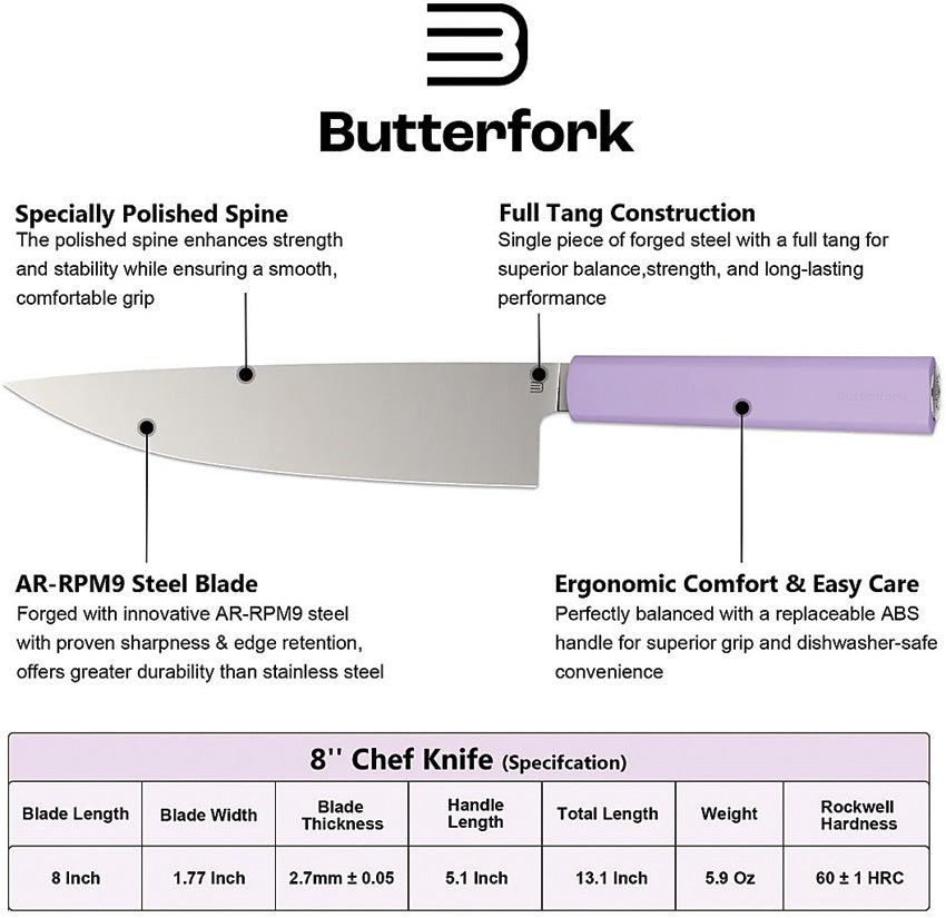 Butterfork Chef's Purple ABS AR-RPM9 Fixed Blade Kitchen Knife 01CKPP