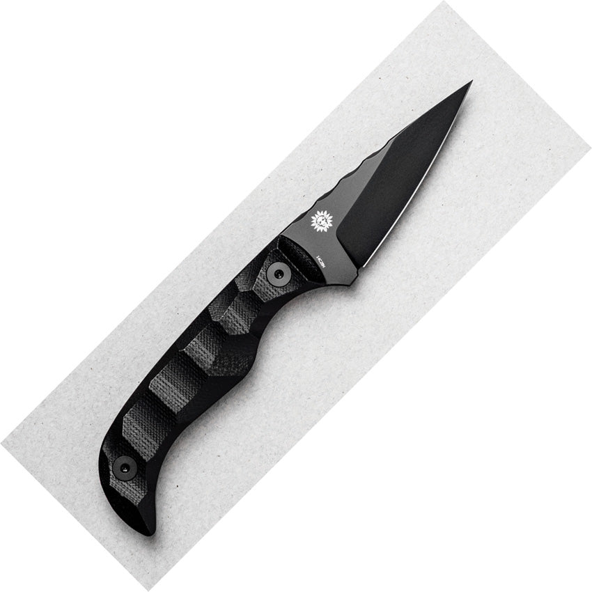 Auxiliary Manufacturing Deadhead Pocket Bowie Black G10 14C28N Fixed Blade Knife 001BK