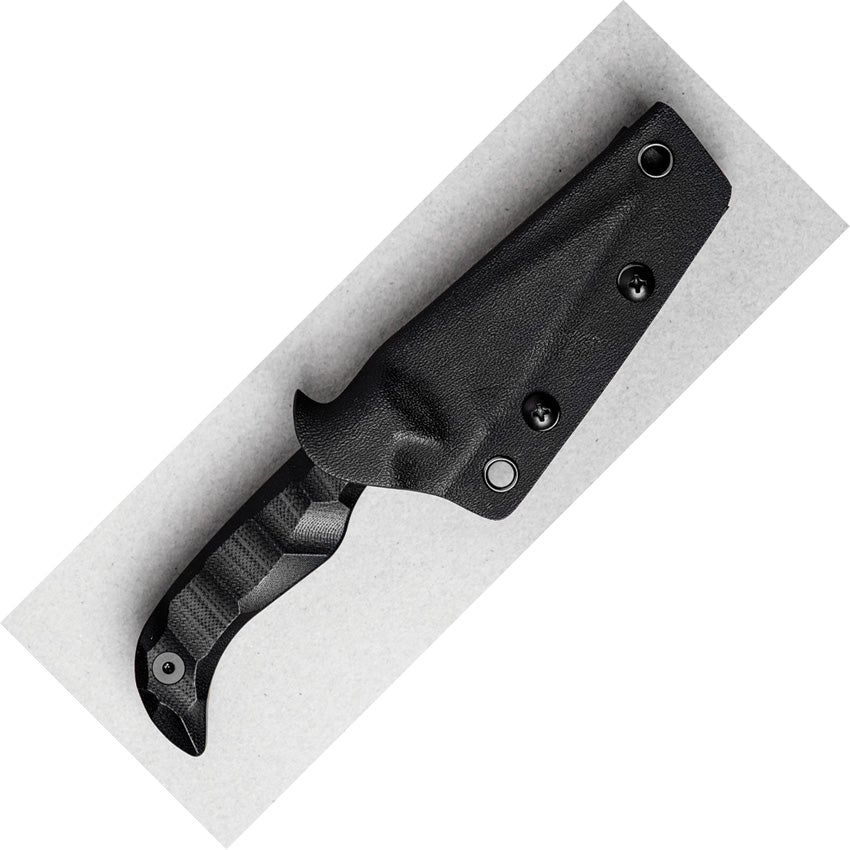 6.25" (15.88cm) overall. 3" (7.62cm) black PVD coated 14C28N Sandvik stainless bowie blade. Black sculpted G10 handle. Full tang. Black Kydex belt sheath. Boxed.