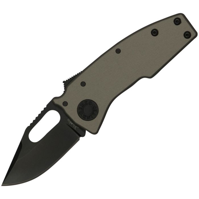 3.75'' closed. 2.125'' Black DLC coated finish CPM-20CV steel clip point blade. Flat Grind. Artillery gray aluminum handle. Shark-Lock. Thumb slot. Tip-Up reversible pocket clip. Designed by Andrew Demko. Boxed.