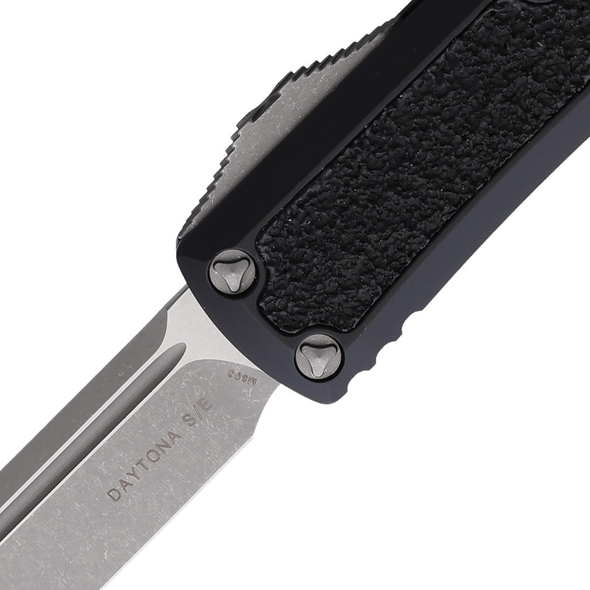 Microtech Automatic Daytona OTF Knife Black Aluminum & Traction Apocalyptic Drop Pt Blade 12410APS