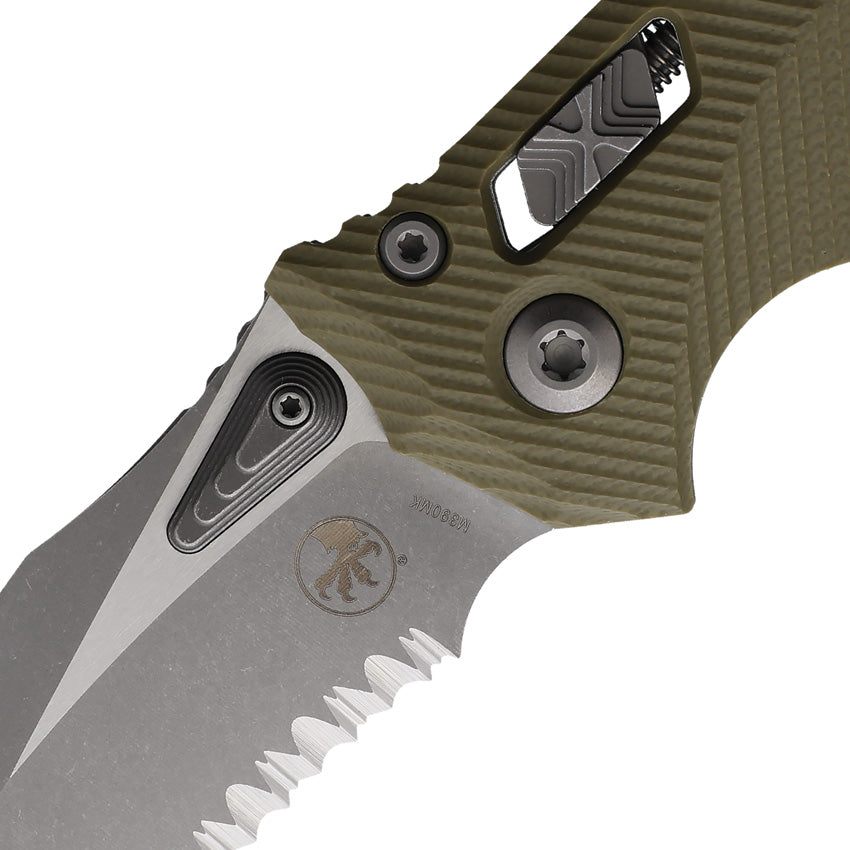 Microtech Amphibian Ram-Lok OD Green Fluted G10 Folding Apocalyptic M390MK Serrated Pocket Knife 16156