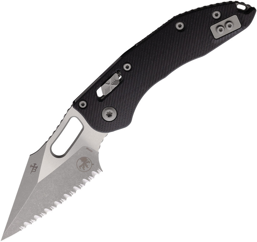 Microtech Stitch Ram-Lok Black Fluted G10 Folding Apocalyptic M390MK Serrated Pocket Knife 16000