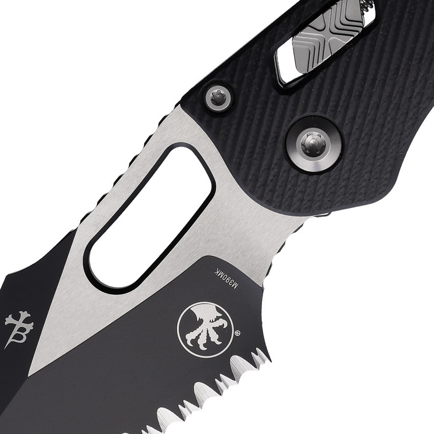 Microtech Stitch Ram-Lok Black Fluted G10 Folding Two-Tone M390MK Serrated Pocket Knife 16308