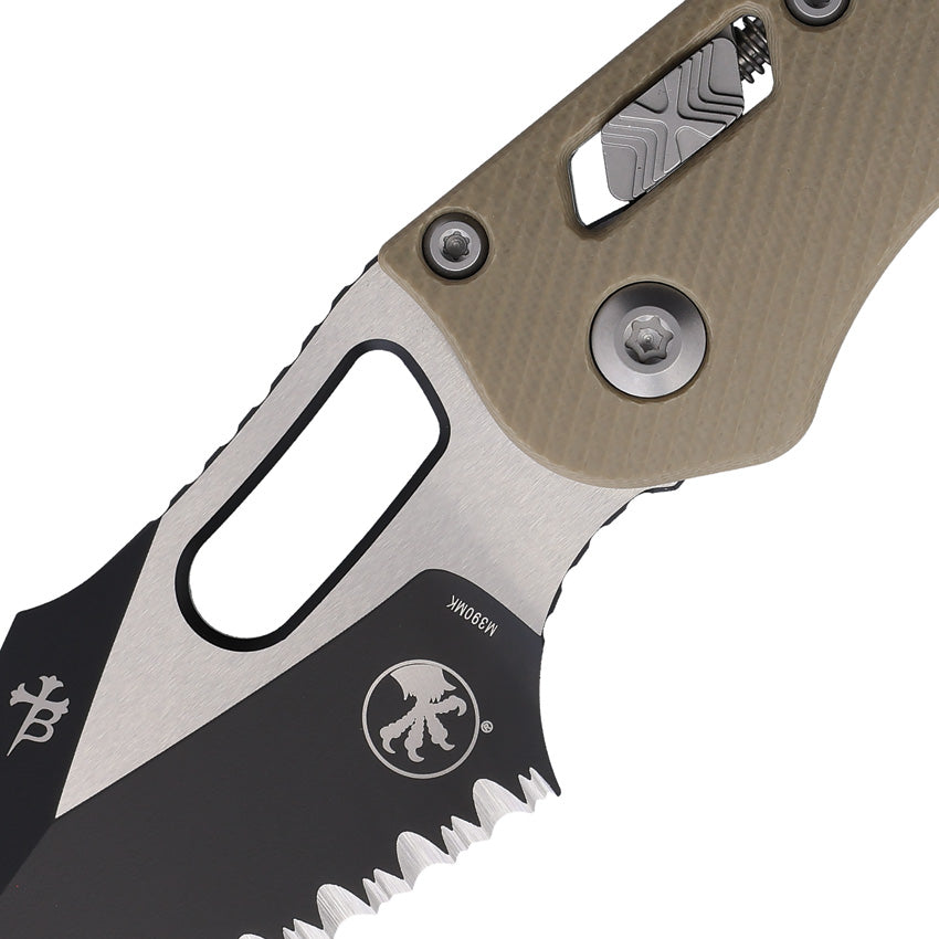 Microtech Stitch Ram-Lok Tan Fluted G10 Folding M390MK Serrated Pocket Knife 17868