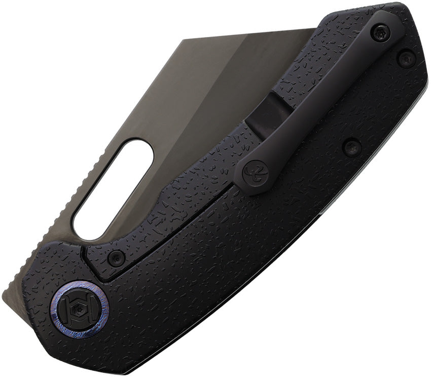 Kunwu Knives Primo Framelock Black Raindrop Titanium Folding Vancron Pocket Knife K710TR1D