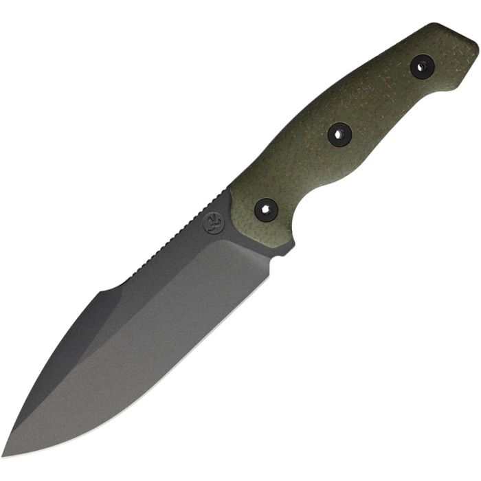 11.38" (28.91cm) overall. 6.13" (15.57cm) black Teflon coated ASSAB-88 steel blade. Green micarta handle. Full tang. Black Kydex belt sheath. Boxed.