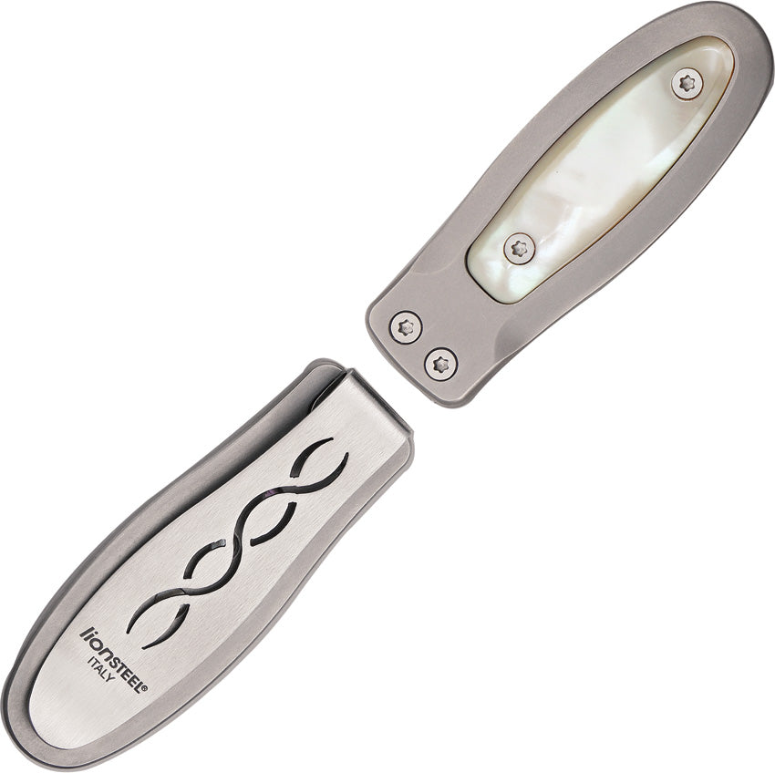 Lion Steel Money Clip Titanium Handle Mother of Pearl Stainless Holder PBMOP