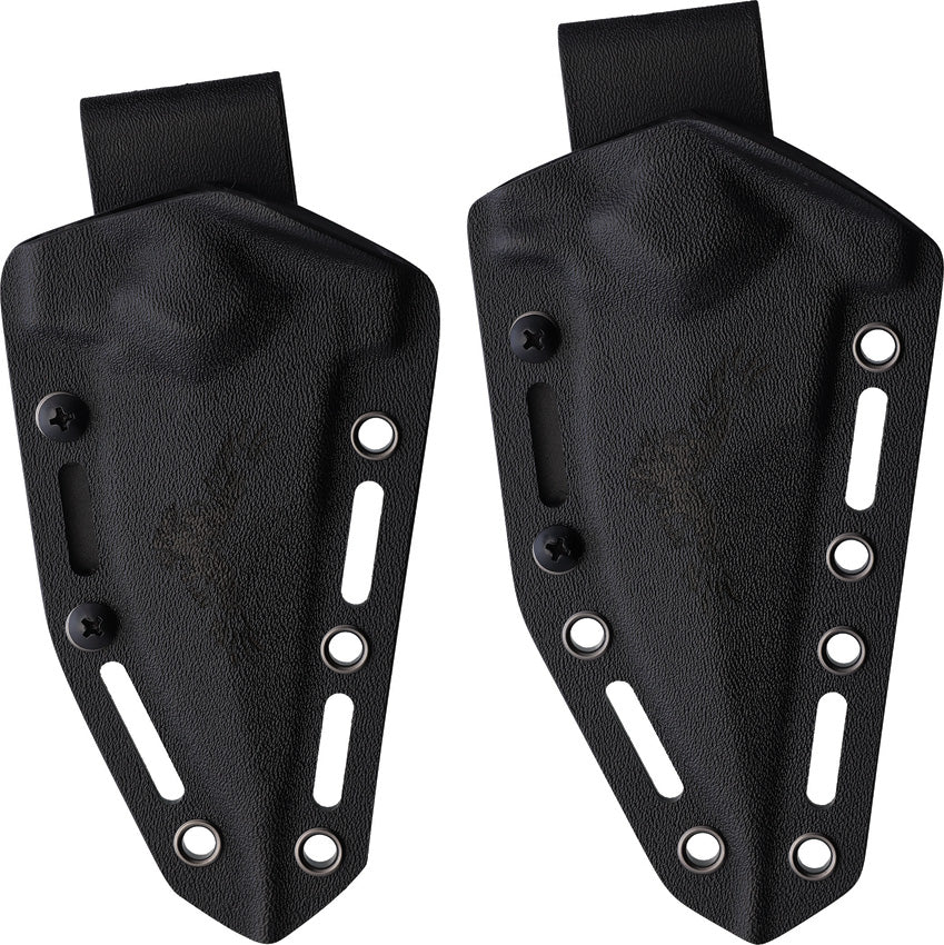 D2 tool steel blade. OD green G10 handle. Includes: 9" overall Deadly Warrior with 4" blade; 8" overall Ghost Warrior with 3.75" blade. HyperBlack titanium finish blade. Ambidextrous Rapideployment Kydex belt sheath with Universal Mount System. Deadly Warrior model was made in limited quantity of only 300 models, each carrying unique ***/300 serial number. Boxed.