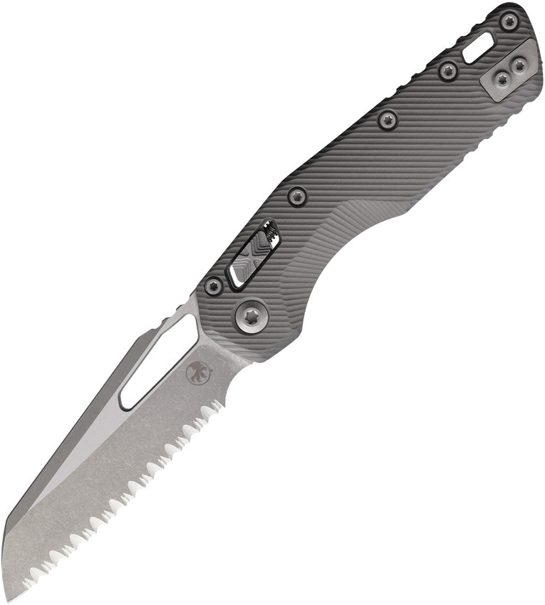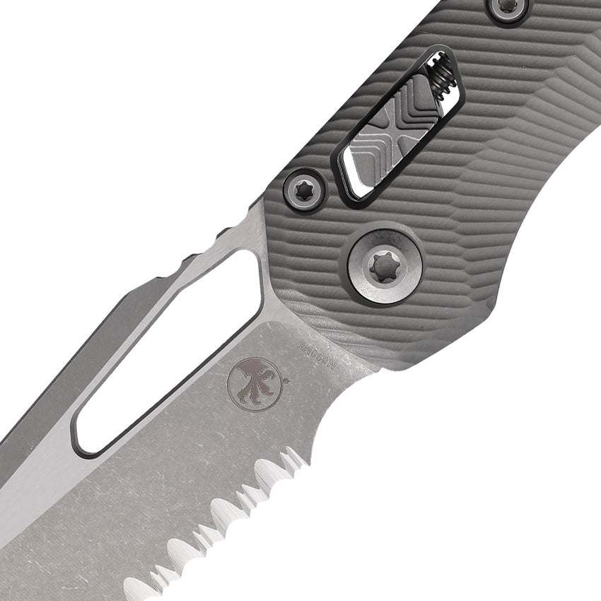 Microtech Standard Issue MSI Ram-Lok Natural Clear Gray Fluted Aluminum Folding Apocalyptic Serrated Knife 21012APFLNC
