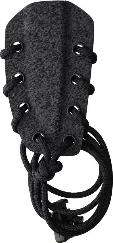 6.38" (16.21cm) overall. 2.75" (6.99cm) blade. Lanyard hole. One-piece construction. One-piece stonewash finish Bohler N690 stainless construction. Black paracord lanyard. Black Kydex neck sheath. Boxed.