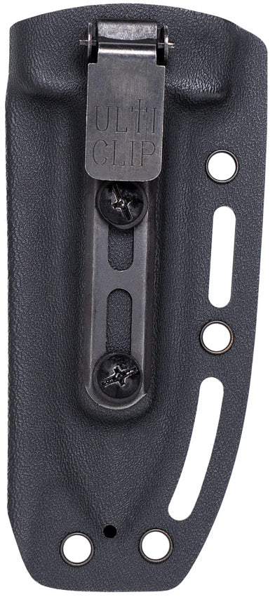 8.63" (21.92cm) overall. 4" (10.16cm) black stonewash finish false edge 14C28N Sandvik stainless dagger blade. Black sculpted G10 handle. Full tang. Lanyard hole. UltiClip Slim 3.3 Kydex belt sheath. Boxed.