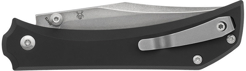 3.75" (9.53cm) closed. 2.75" (6.99cm) stonewash finish Elmax steel clip point blade. Black anodized aluminum handle. Thumb stud. Pocket clip. Boxed.
