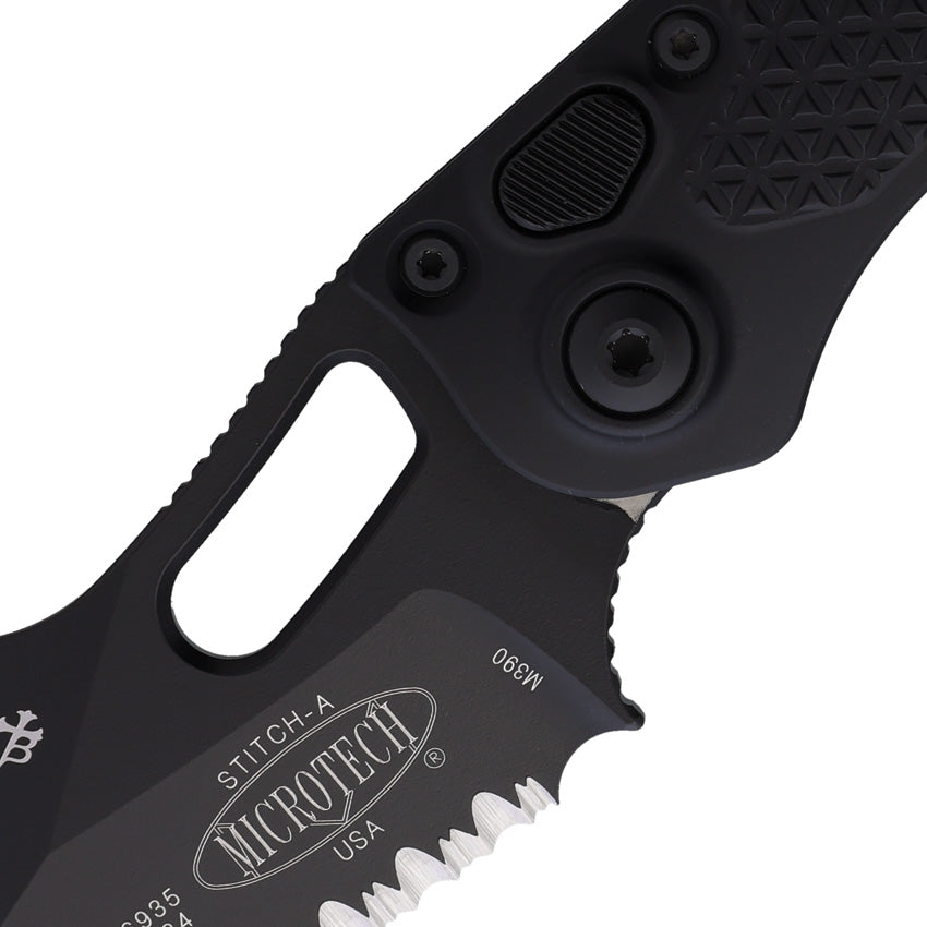 Microtech Automatic Stitch Knife Button Lock Black Aluminum Serrated Blade 1693T
