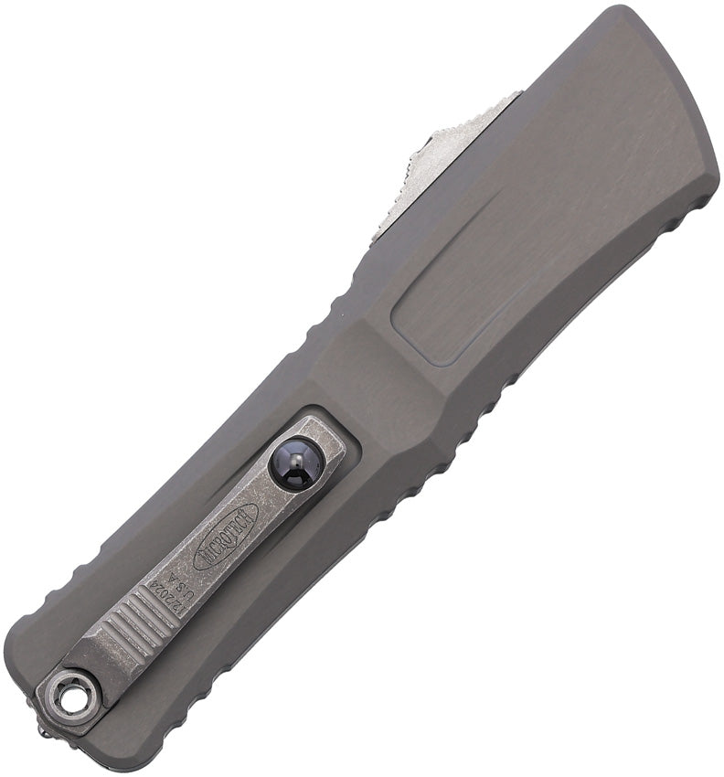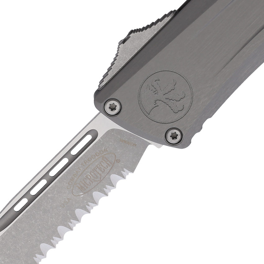 Microtech Automatic Combat Troodon Gen III OTF Knife Natural Clear Gray Aluminum Apocalyptic Serrated Blade 114311APNC