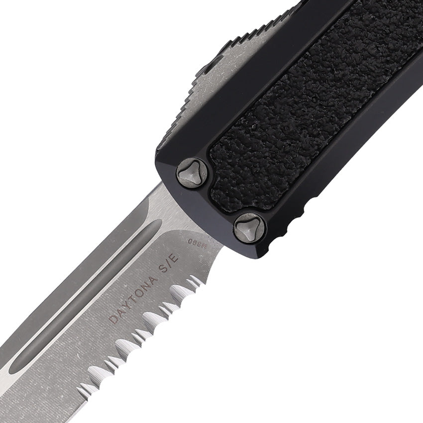 Microtech Automatic Daytona OTF Knife Black Aluminum & Traction Apocalyptic Serrated Blade 12411APS