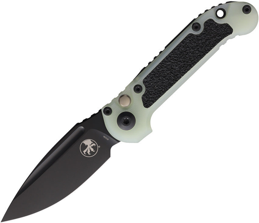 Automatic opening. 4.5" (11.43cm) closed. 3.5" (8.89cm) black finish Bohler M390MK stainless blade. Jade G10 handle with black traction insert. Lanyard hole. Pocket clip. Boxed.