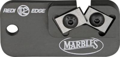 Measures approximately 2" x 1" x 1/8". Hardened ceramic honing surface is chemically bonded to black anodized aluminum body. Features Duromite cutter sharpening inserts. Convenient and compact. Easy to use. Rust resistant. Hang packaged.