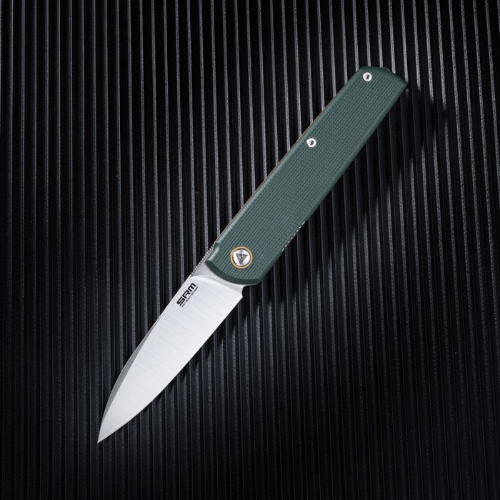 SRM Knives Qrick Linerlock Green & Orange G10 Folding 14C28N Knife 408LGX