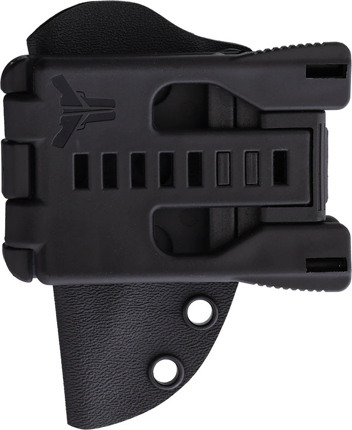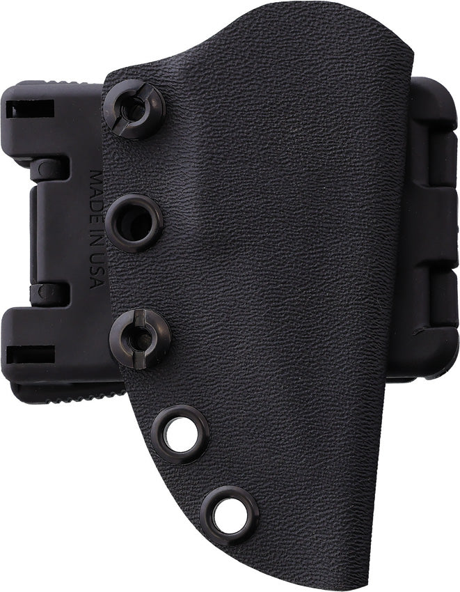 7.75" (19.69cm) overall. 2.5" (6.35cm) black Cerakote finish double edge 1095HC steel blade. Black Cerakote handle. Finger ring. Full tang. Black Kydex belt sheath. Boxed.