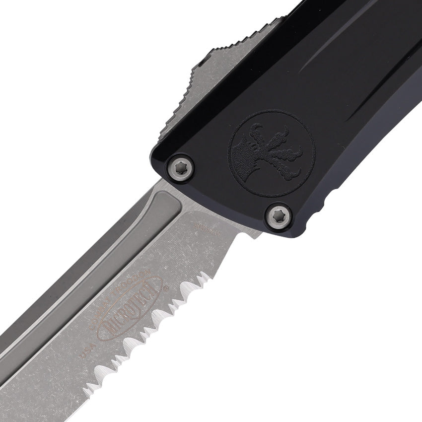 Microtech Automatic Combat Troodon Gen III OTF Knife Black Aluminum Apocalyptic Serrated Tanto Blade 114411AP