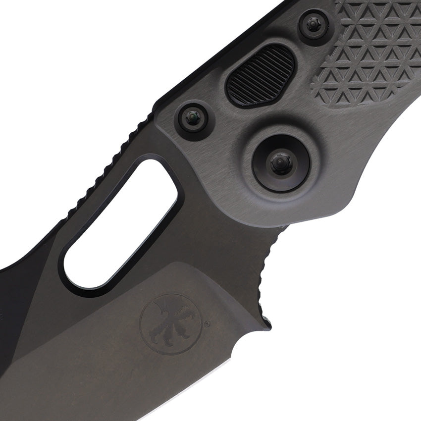 Microtech Automatic Stitch Knife Button Lock Natural Clear Gray Aluminum Black DLC Blade 1691DLCTNCS
