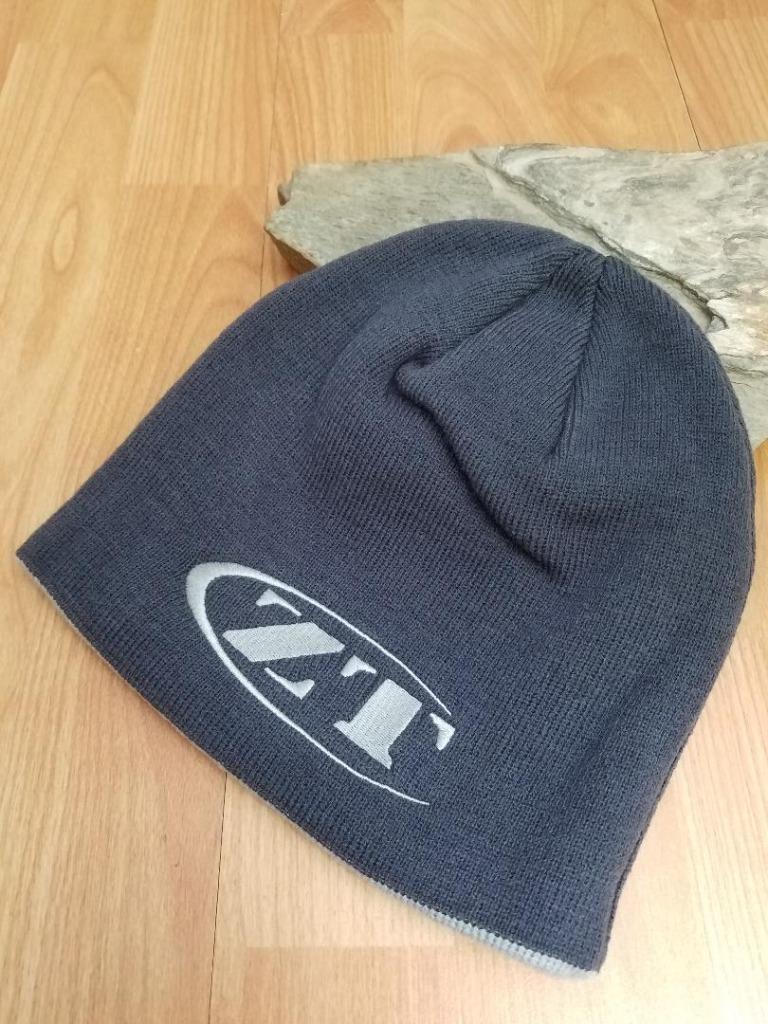 Acrylic knit beanie keeps you warm (or boldly disguises a bad hair day). Even better, you get two looks in one. On the outside, the beanie is dark charcoal gray with the embroidered silver ZT logo. On the inside, it's a versatile lighter gray. Rightside out or inside out, it will keep you warm and looking good. Bulk packaged.