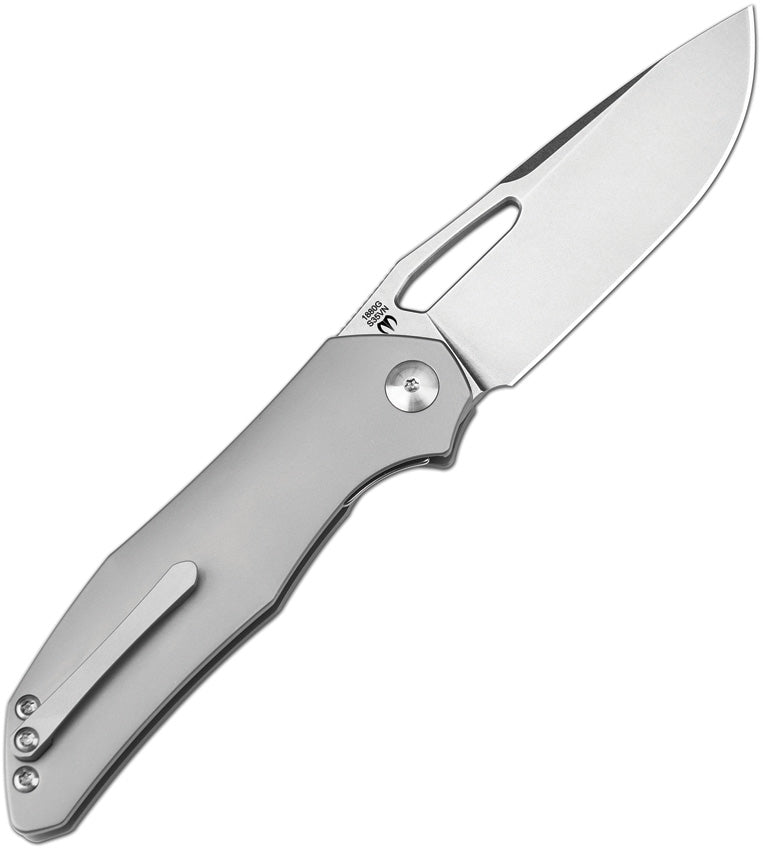 4.24'' closed. 3.31'' Stonewashed finish S35VN steel drop point blade. Flat Grind. Gray titanium handle. Framelock. Ceramic ball bearing. Thumb slot. Tip-Up reversible pocket clip. Boxed.